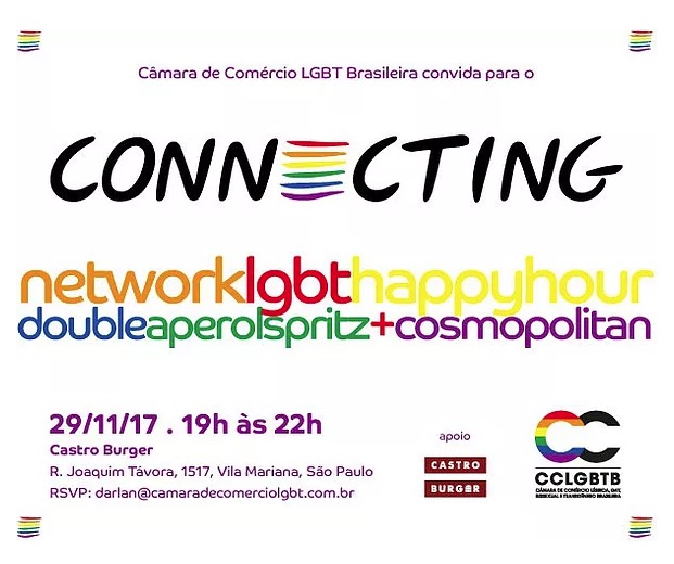 O Connecting, evento de network da Câmara de Comércio LGBT Brasileira, acontece na próxima quarta-feira (29/11) no Castro Burger.