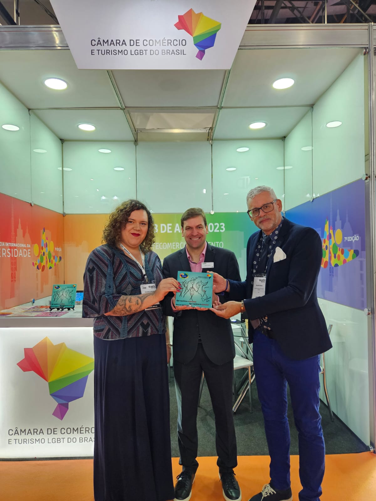 A Câmara de Comércio e Turismo LGBT do Brasil marcou presença na WTM Latin America, que aconteceu no Expo Center Norte, entre os dias 03 e 05 de abril. Durante o evento, a entidade distribuiu a versão 2023 do Azulejo “AQUI RESPEITAMOS A DIVERSIDADE” para associados, personalidades do setor e órgãos governamentais.