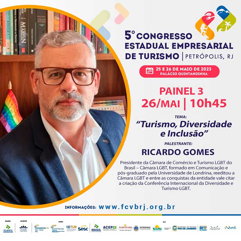 No dia 26/05, às 10h45, Ricardo Gomes, presidente da Câmara LGBT, participará do painel “Turismo, Diversidade e Inclusão”, abordando a importância da diversidade no setor turístico. Com sua vasta experiência e conhecimento sobre o tema, Gomes trará insights valiosos para os participantes do evento. Além disso, ele discutirá a importância de políticas inclusivas por parte das empresas e destinos turísticos, ressaltando que a diversidade vai além da questão LGBTQIA+.