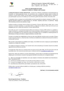 A Câmara de Comércio e Turismo LGBT do Brasil –, através de sua Diretoria, devidamente representada pelo seu Presidente, Sr. Ricardo Aparecido Gomes, em consonância com o estabelecido Estatuto Social da Câmara de Comércio e Turismo LGBT do Brasil, convoca todos os associados fundadores, associados efetivos e diretores e para participação no processo de eleição para nova Diretoria, gestão Novembro de 2022 / Novembro 2027.