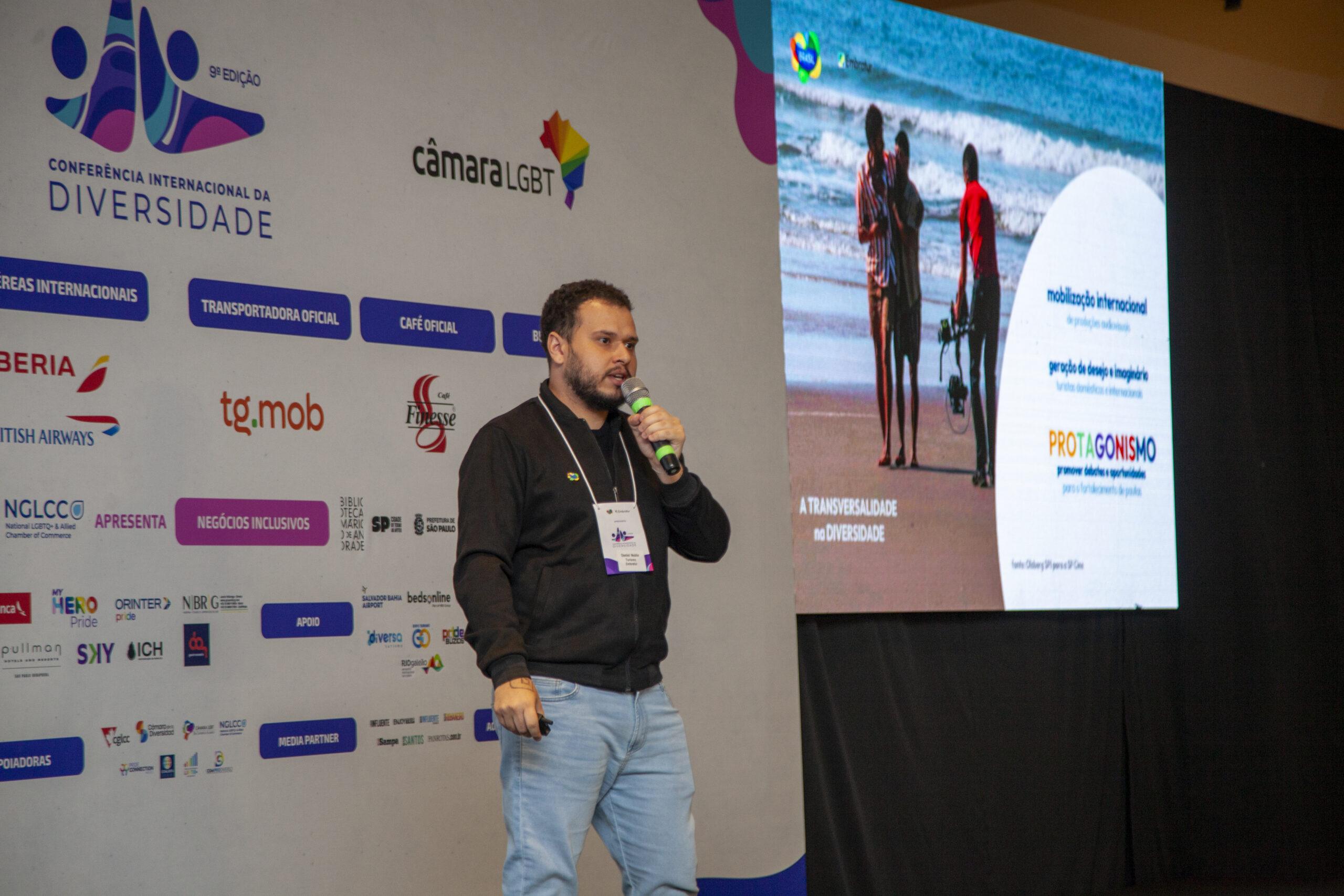 A 9ª Conferência Internacional da Diversidade, que aconteceu entre os dias 09 e 12 de setembro, promovida pela Câmara de Comércio e Turismo LGBT do Brasil, reuniu especialistas, representantes do poder público e produtores culturais para debater estratégias de promoção do turismo inclusivo e apresentar iniciativas voltadas à diversidade. Entre os painéis do dia dedicado ao turismo, a Embratur marcou presença com a palestra “Brasis da Diversidade”, proferida por Daniel Noble, supervisor da Coordenação de Afroturismo, Diversidade e Povos Indígenas da agência.