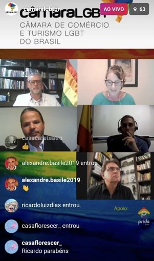 A Câmara de Comércio e Turismo LGBT do Brasil realizou hoje a sua primeira live para discutir as estratégias dos destinos nacionais e internacionais para o atual cenário do setor. À frente da transmissão, estava Ricardo Gomes, Presidente da Câmara LGBT, e mediação coube ao Diretor de Turismo da entidade, André Raynaud.
