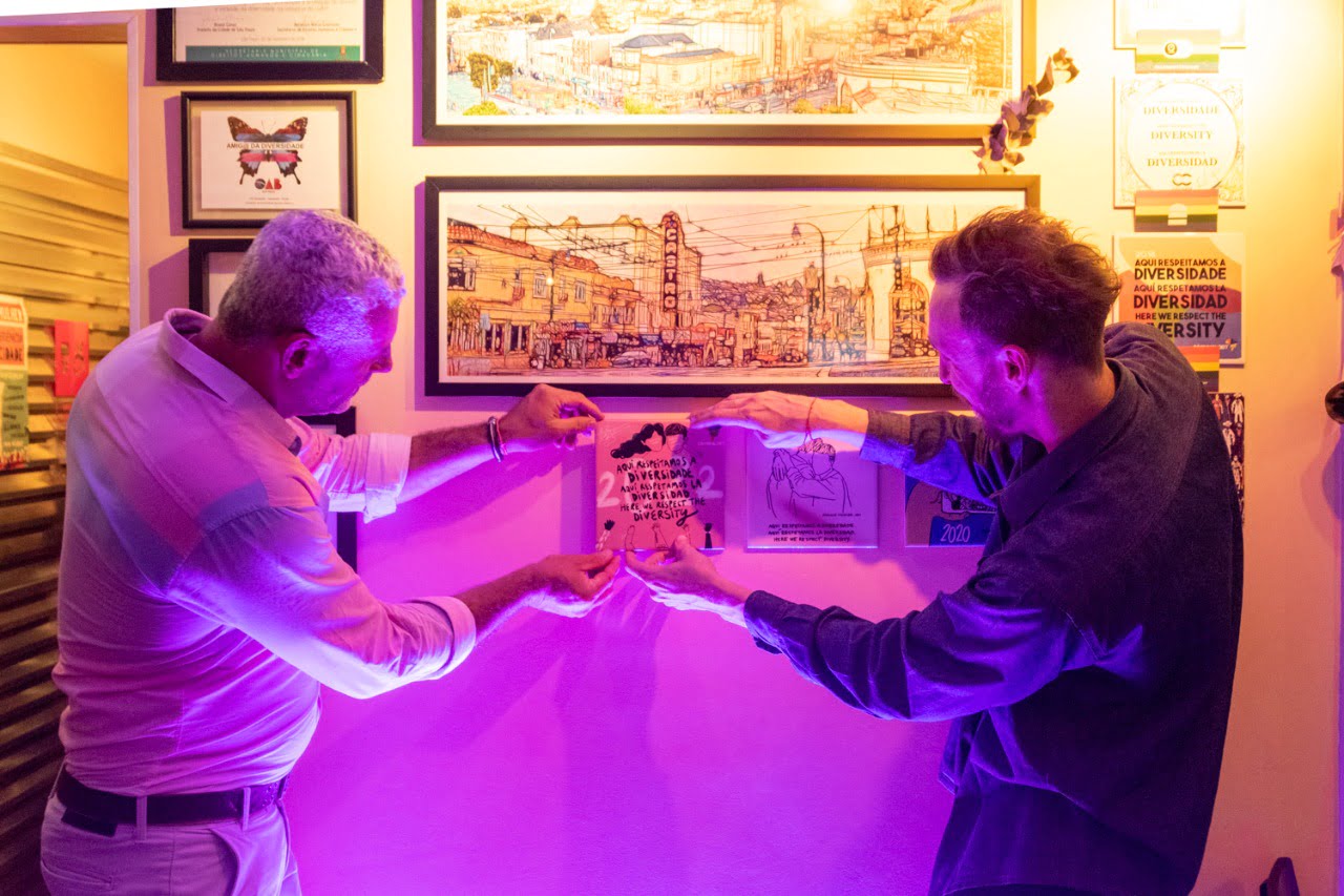 Vários associados quiseram receber o tradicional Azulejo da entidade, edição 2022, no evento nesta data que é tão emblemática para celebrar a comunidade. O azulejo traz a frase “Aqui Respeitamos a Diversidade”, em Português, Inglês e Espanhol. O azulejo 2022 foi criado pela jovem ilustradora e escritora Elayne Baeta, que é a primeira baiana e a primeira lésbica a assinar o Azulejo da Câmara LGBT