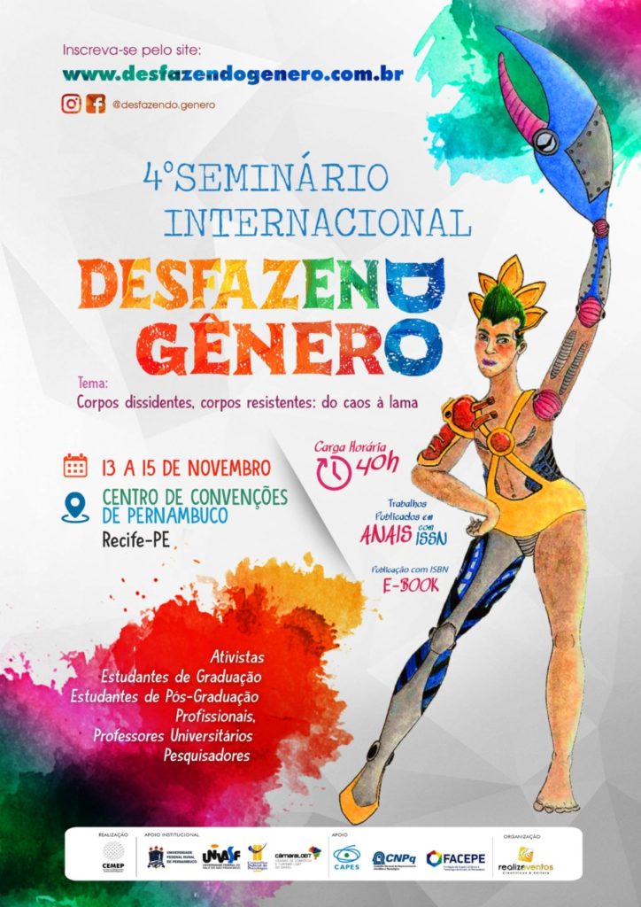 Pernambuco foi escolhido o estado sede para receber a 4ª edição do Seminário Internacional Desfazendo Gênero (IV Desfazendo Gênero), que acontece entre os dias 13 e 15 de novembro no Centro de Convenções de Pernambuco, em Recife (PE).