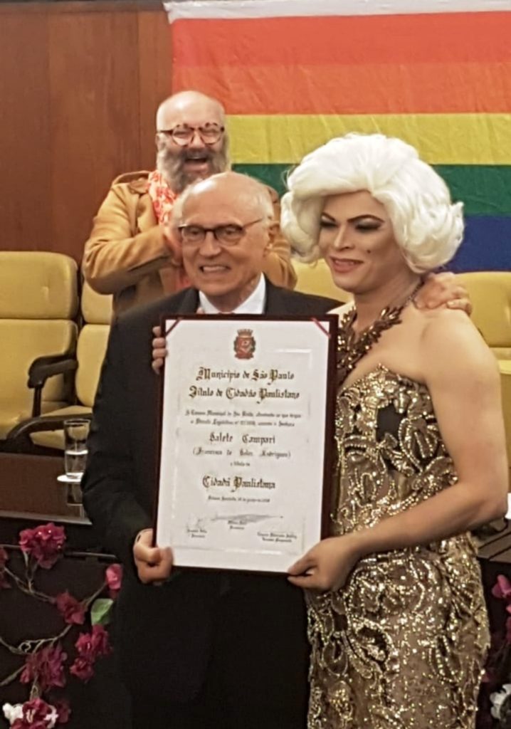 Uma das drag queens mais famosas e queridas da noite de São Paulo, Salete Campari recebeu o título de Cidadã Paulistana na noite da última terça-feira (14). A solenidade ocorreu no Salão Nobre da Câmara dos Vereadores na região central da capital paulista.