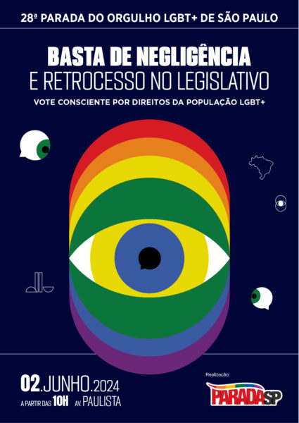 Em 2024, a população brasileira vai às ruas para eleger representantes do Legislativo, ou seja, prefeitos e vereadores que vão representar os mais de 5.560 municípios que existem no país. Reconhecendo a importância do voto favorável aos direitos da população LGBT+, a Associação da Parada do Orgulho LGBT de São Paulo (APOLGBT-SP) estabelece, na 28ª Parada do Orgulho LGBT+ de São Paulo, o tema Basta de Negligência e Retrocesso no Legislativo – Vote consciente por direitos da população LGBT+, buscando mobilizar a comunidade para assumir um papel ativo na escolha de seus representantes, a fim de superar as barreiras existentes no Legislativo. Neste ano, a Parada do Orgulho LGBT+ de São Paulo acontece dia 2 de junho, domingo, a partir das 10h, na Avenida Paulista.